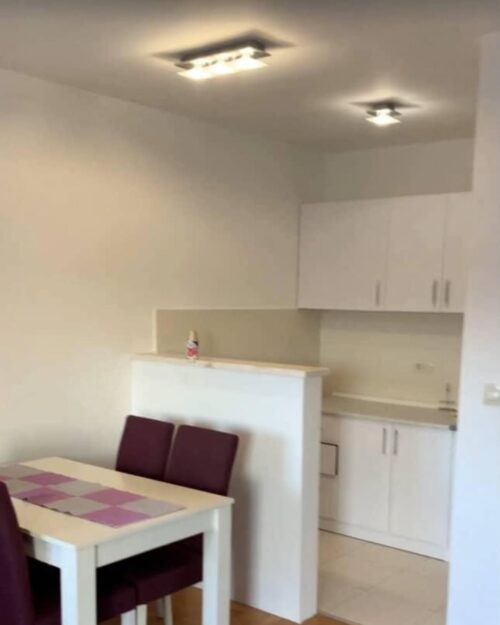 One-room furnished apartment for rent at Stari Aerodrom, Zetagradnja building, near Star Fitness. The apartment is located on the 4th floor, the building has 2 elevators.