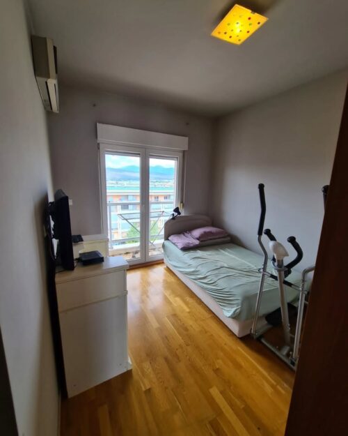 Izdaje se dvosoban stan u City Kvartu, zgrada gdje je Kia motors.. ima parking mjesto u zatvorenoj garazi, slobodan od 17og septembra.70m², hodnik, dnevna, dvije spavace sobe, wc, kupatilo, multisplit sistem klime, dnevna ima izlaz na terasu, terasa komplet zatvorena staklom, dvije spavace sobe imaju takodje balkon.