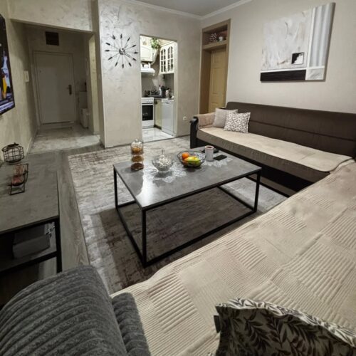 Prodaje se manji dvosoban stan 47m² na Starom Aerodromu, ul. Zmaj Jovina 26.Stan se nalazi u polu suterenu. U blizini stana se nalazi market Voli, Osnovna škola ” Pavle Rovinski”.
