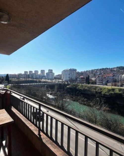 Izdaje se jednosoban stan kod Vezirovog mosta. Nalazi se na drugom spratu zgrade koja posjeduje lift i dostupan javni parking. Kompletno je opremijen, zapadno orijentisan i veoma osunačn sa pogledom na rijeku Moraču. Struktura: ulazni hodnik, dnevni boravak sa trpezarijom i kuhinjom, prostrana terasa, spavaća soba, kupatilo. Grijanje i hladjenje regulisano je putem 2 klima uredjaja.